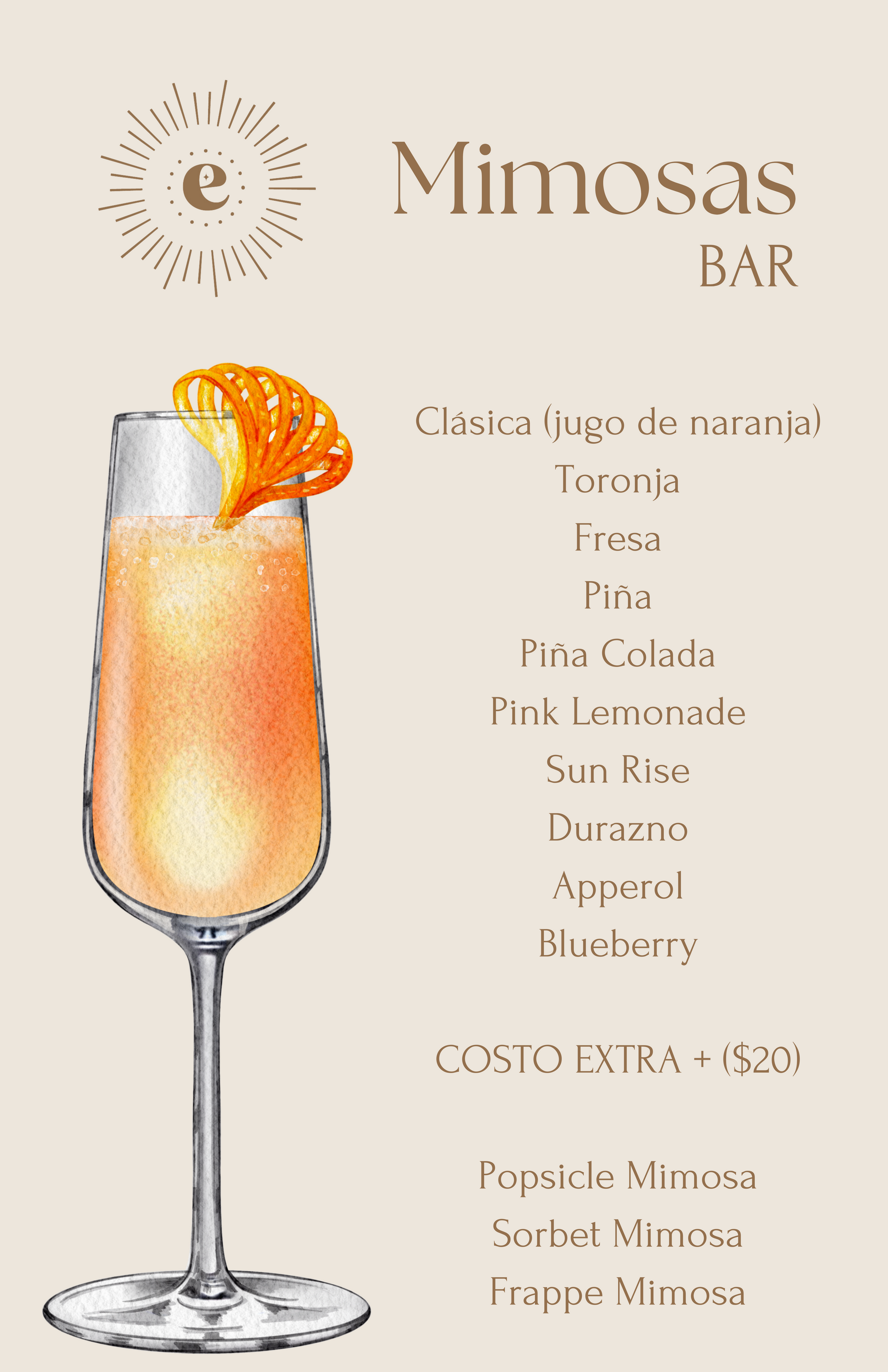 Servicio de mimosas para tus eventos, sujeto a disponibilidad.